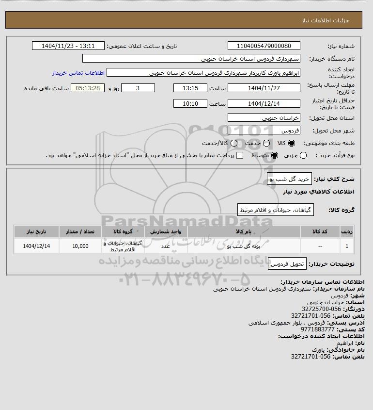 استعلام خرید گل شب بو، سامانه ستاد، استعلام روز شنبه بیست و پنجم بهمن ماه 1404, استعلام خرید گل شب بو، سامانه ستاد