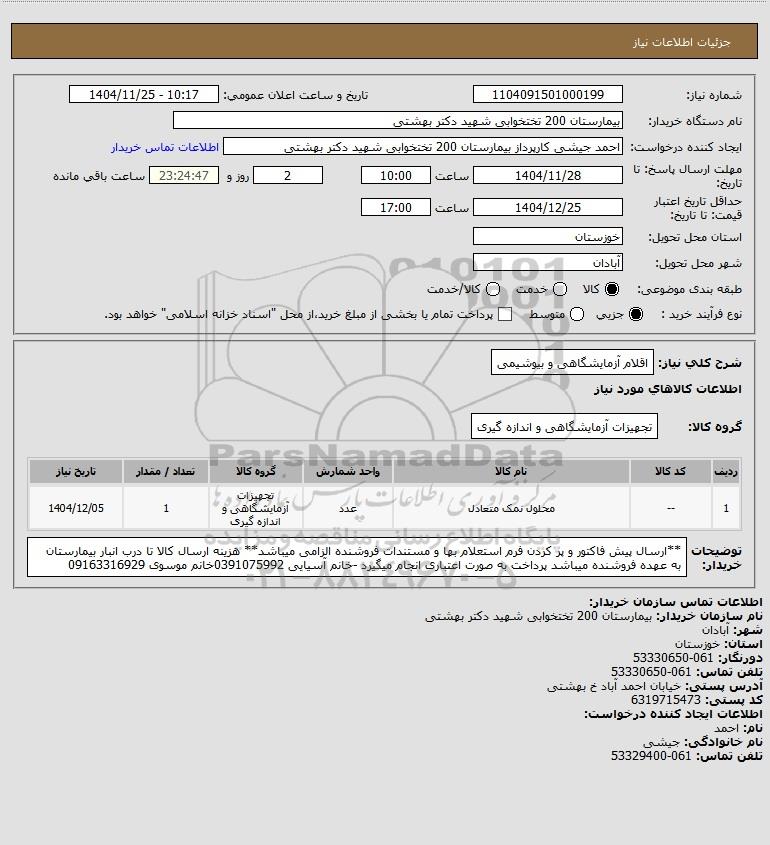 استعلام اقلام آزمایشگاهی و بیوشیمی, استعلام اقلام آزمایشگاهی و بیوشیمی
