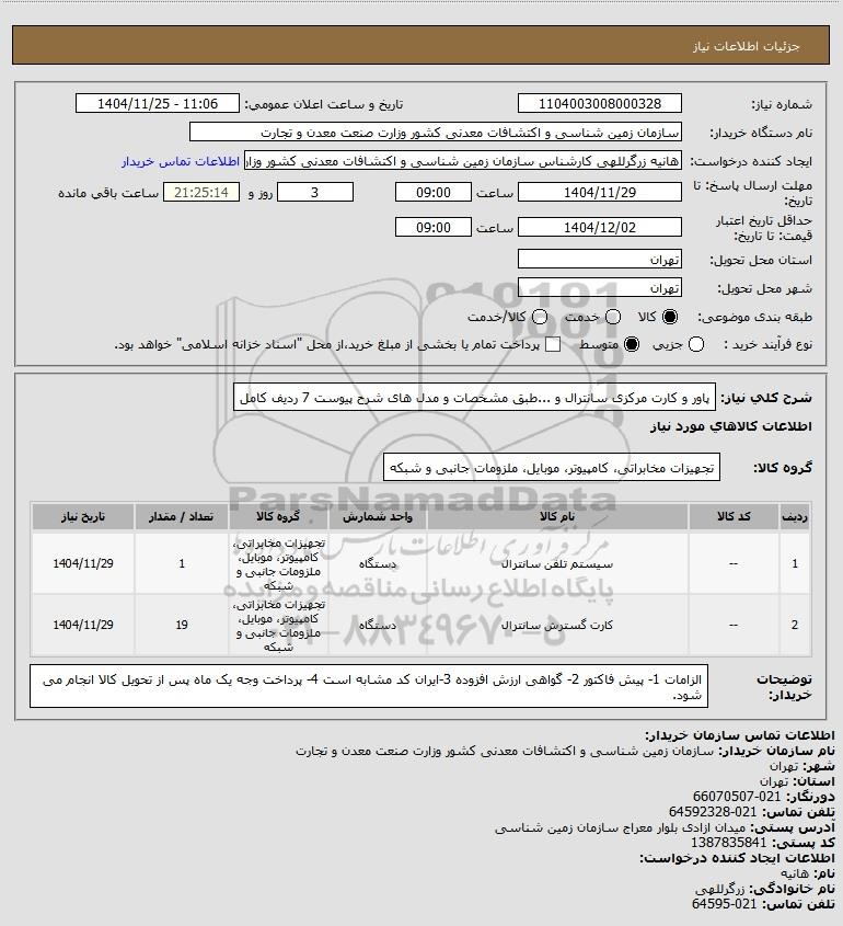 1 -- سیستم تلفن سانترال دستگاه تجهیزات مخابراتی، کامپیوتر، موبایل، ملزومات جانبی و شبکه 1 1404/11/29