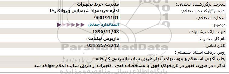 اداره برگزارکننده استعلام: اداره خریدمواد شیمیایی و روانکارها
