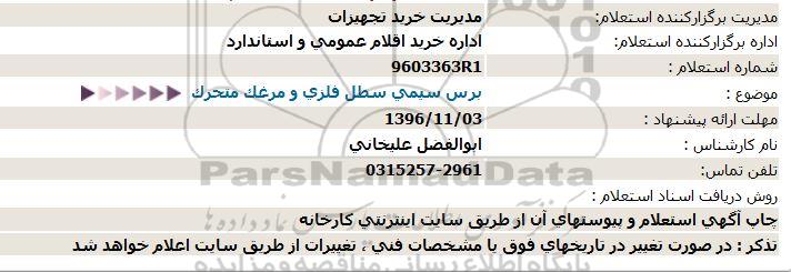 اداره برگزارکننده استعلام: اداره خرید اقلام عمومی و استاندارد