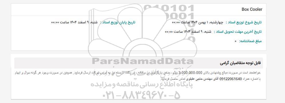 برای شرکت در مناقصه حتما از تصویر آگهی در سایت پارس نماد داده ها استفاده نمایید