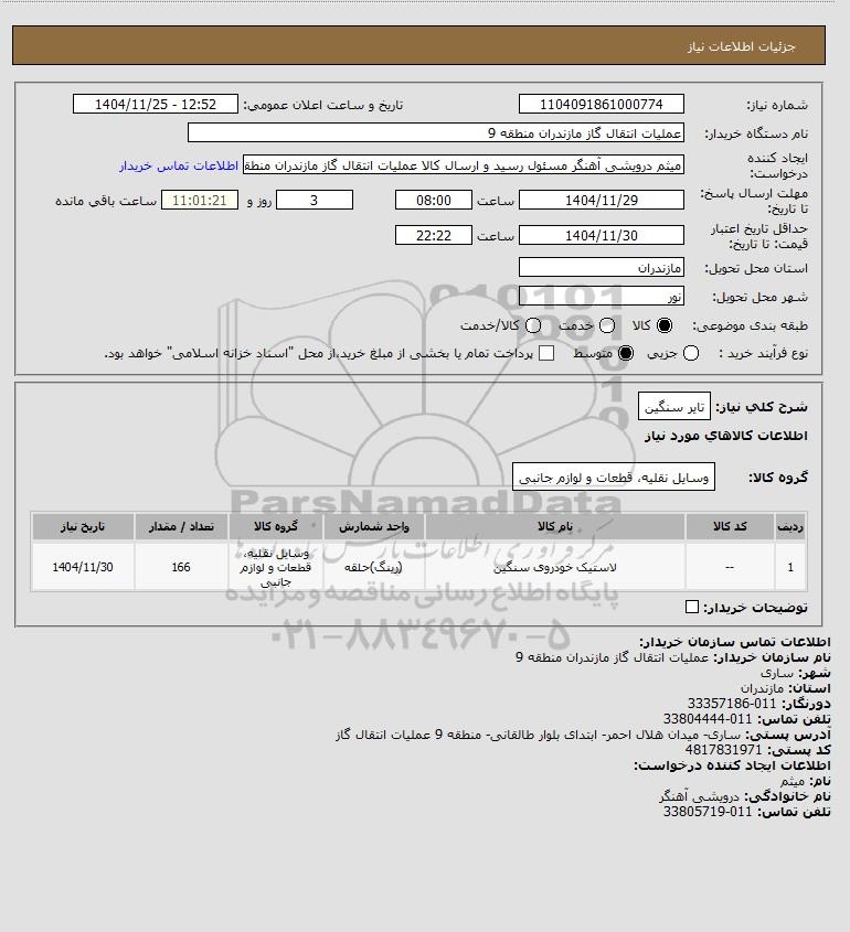 | 1 | -- | لاستیک خودروی سنگین | (رینگ)حلقه | وسایل نقلیه، قطعات و لوازم جانبی | 166 | 1404/11/30 |