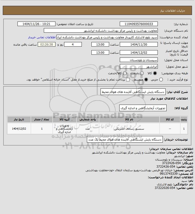 نام دستگاه خریدار:معاونت بهداشت و رئیس مرکز بهداشت دانشکده ایرانشهر