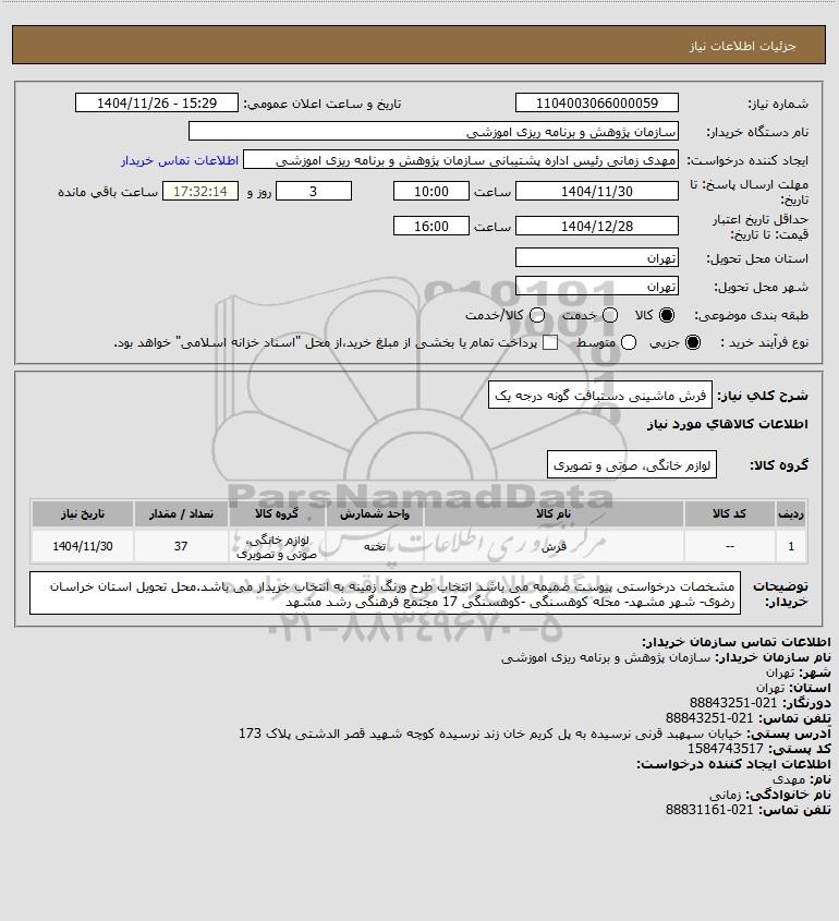 شرح کلی نیاز: فرش ماشینی دستبافت گونه درجه یک
