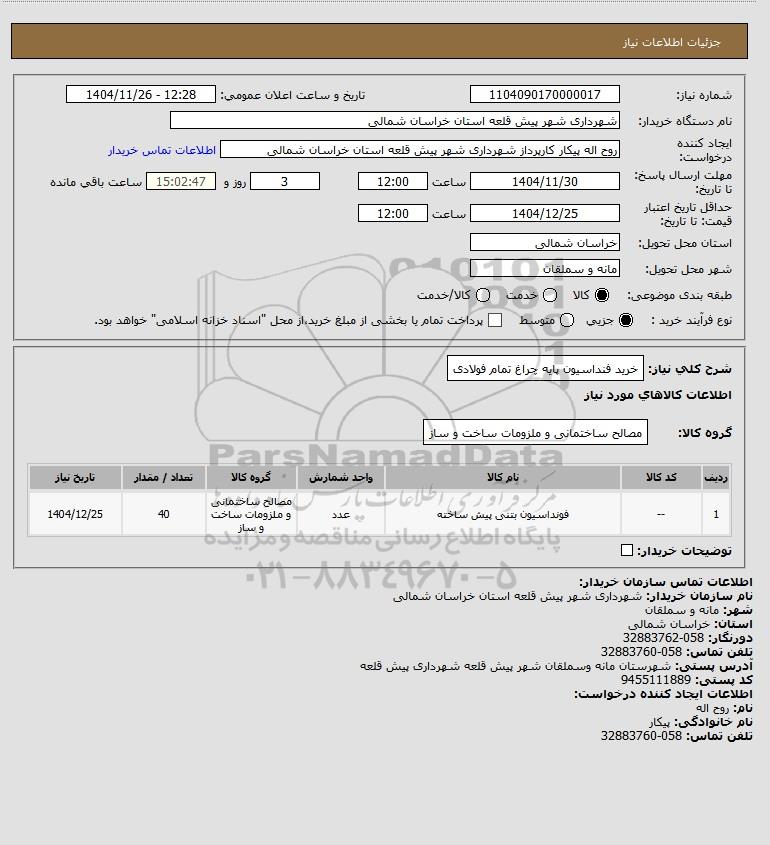 شرح کلی نیاز: خرید فنداسیون پایه چراغ تمام فولادی