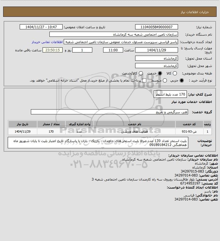استعلام 170 عدد بلیط استخر, استعلام 170 عدد بلیط استخر