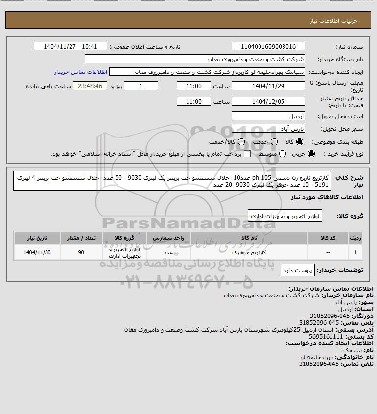1 -- کارتریج جوهری عدد لوازم التحریر و تجهیزات اداری 90 1404/11/30
