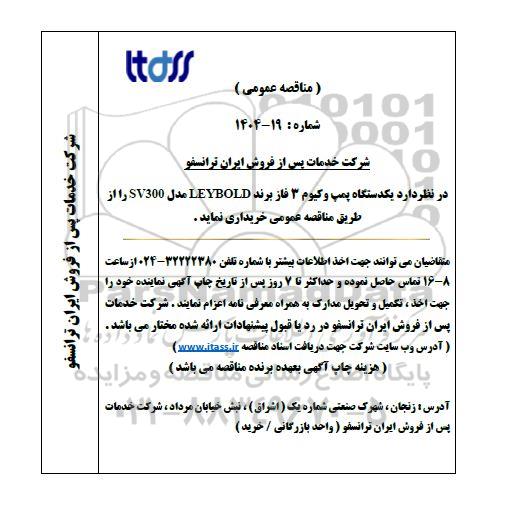 مناقصه عمومی یکدستگاه پمپ وکیوم 3 فاز برند LEYBOLD مدل SV300 -مناقصه روز دوشنبه بیست و هفتم بهمن ماه 1404, مناقصه عمومی یکدستگاه پمپ وکیوم 3 فاز برند LEYBOLD مدل SV300