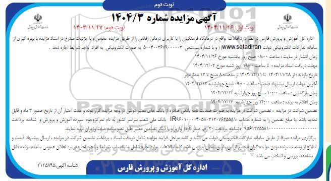 آگهی مزایده شماره 1404/3 ؟ نوبت دوم