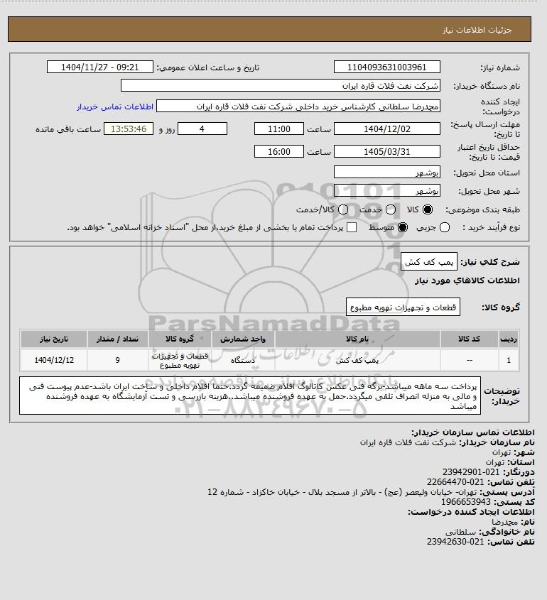 نام سازمان خریدار: شرکت نفت فلات قاره ایران