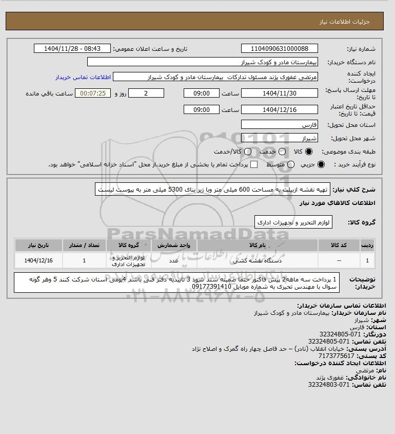 1 -- دستگاه نقشه کشی عدد لوازم التحریر و تجهیزات اداری 1 1404/12/16