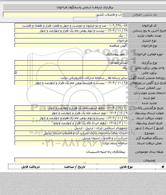 برای شرکت در مناقصه حتما از تصویر آگهی در سایت پارس نماد داده ها استفاده نمایید