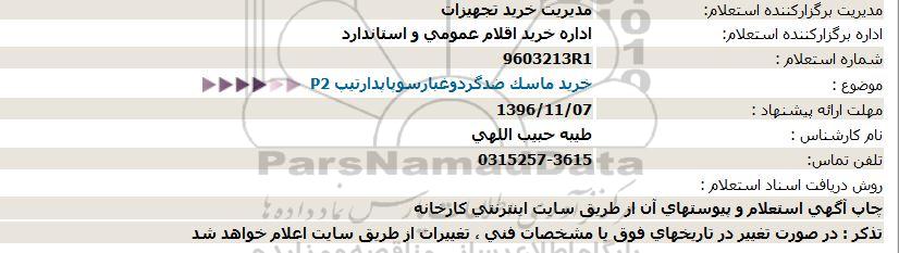 اداره برگزارکننده استعلام: اداره خرید اقلام عمومی و استاندارد
