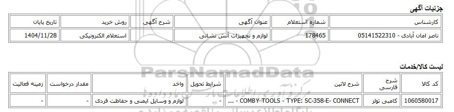 ناصر امان آبادی - 05141522310178465لوازم و تجهیزات آتش نشانیاستعلام الکترونیکی1404/11/28