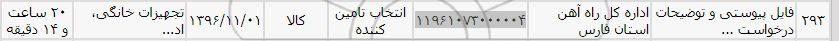 اداره کل راه آهن استان فارس | 11961073000004 | انتخاب تامین کننده |