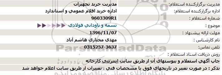 استعلام بها و موضوع استعلام مناقصه, استعلام تسمه و ناودانی فولادی به اطلاع کلیه شرکتها و افراد متخصص واجد شرایط میرساند، آگهی گذار در نظر دارد از طریق استعلام بها، نسبت به انتخاب و دریافت پیشنهادات اقدام نماید. این استعلام با کد آگهی ثبت شده در سامانه خبرگزاری پارس نماد : 1033210 منتشر شده است. مشخصات استعلام : تاریخ شروع استعلام: 1396/11/02 آخرین مهلت ارسال پیشنهاد قیمت : 1396/11/07 و محل اجرای پروژه : استان اصفهان میباشد. استعلام قیمت مورد درخواست : مناقصه, استعلام تسمه و ناودانی فولادی با دستهبندیهای تخصصی و گروه های مرتبط : آهن آلات, استعلام اطلاع رسانی میگردد.