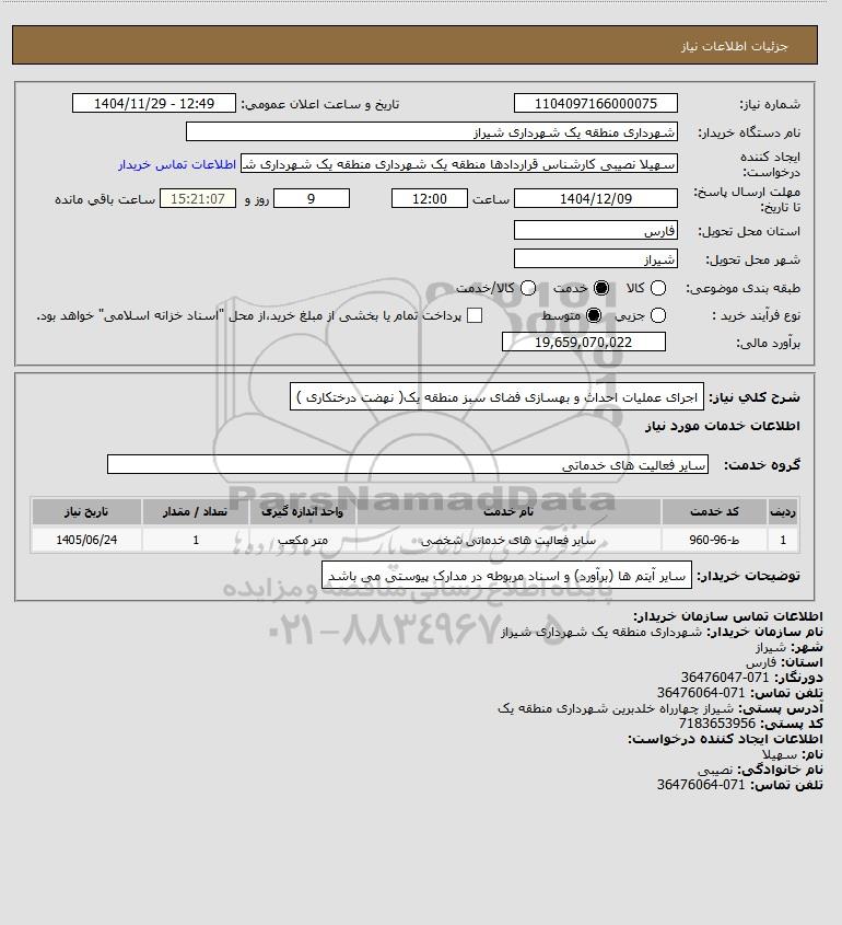 شرح کلی نیاز: اجرای عملیات احداث و بهسازی فضای سبز منطقه یک( نهضت درختکاری )