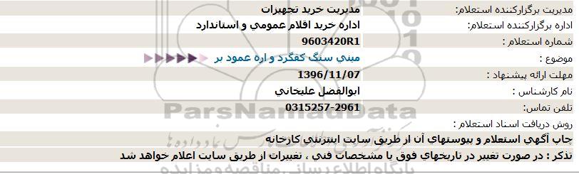 اداره برگزارکننده استعلام: اداره خرید اقلام عمومی و استاندارد
