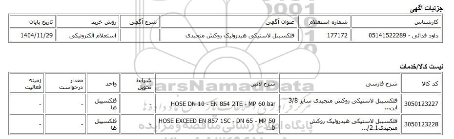 استعلام الکترونیکی فلکسیبل لاستیکی هیدرولیک روکش منجیدی, استعلام الکترونیکی، فلکسیبل لاستیکی هیدرولیک روکش منجیدی