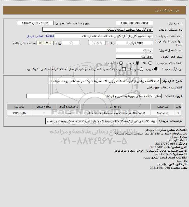 نام دستگاه خریدار:اداره کل بیمه سلامت استان لرستان