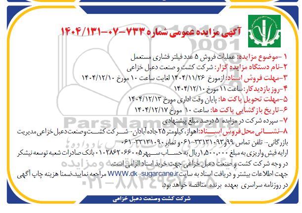 آگهی مزایده عمومی ؟ شماره : 733 - 07 - 1404/131