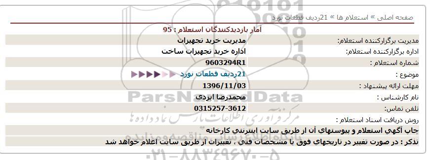 اداره برگزارکننده استعلام: اداره خرید تجهیزات ساخت