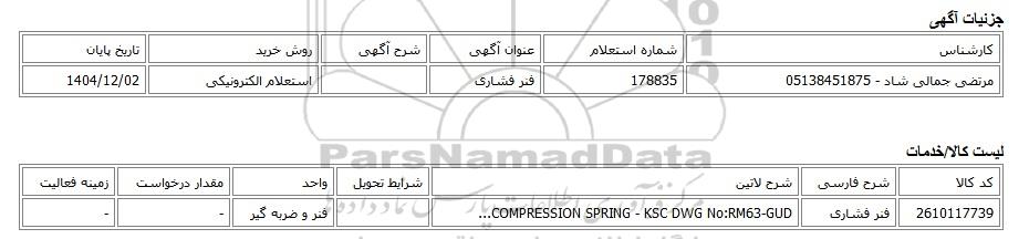 مرتضی جمالی شاد - 05138451875178835فنر فشاریاستعلام الکترونیکی1404/12/02