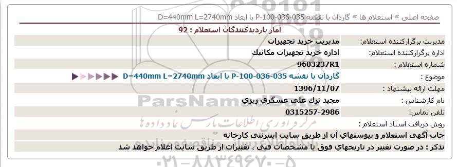 اداره برگزارکننده استعلام: اداره خرید تجهیزات مکانیک