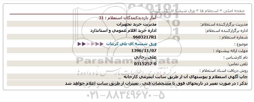 استعلام ورق شیشه ای پلی کربنات, استعلام ,استعلام ورق شیشه ای پلی کربنات