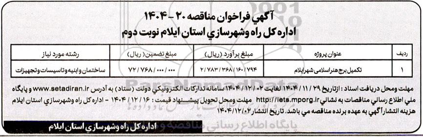 مناقصه تکمیل برج هنر اسلامی شهر - نوبت دوم , مناقصه تکمیل برج هنر اسلامی شهر - نوبت دوم