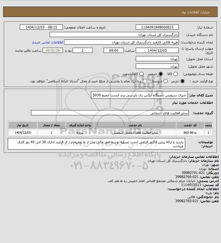 شرح کلی نیاز: جنرال سرویس دستگاه ایکس ری بازرسی برند ایست ایمیج 5030