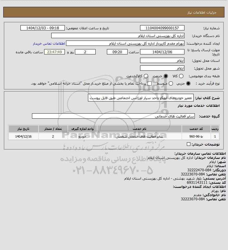 شرح کلی نیاز: تعمیر خودروهای ایویکو واحد سیار اورژانس اجتماعی طبق فایل پیوست