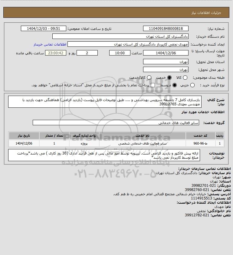 نام دستگاه خریدار:دادگستری کل استان تهران