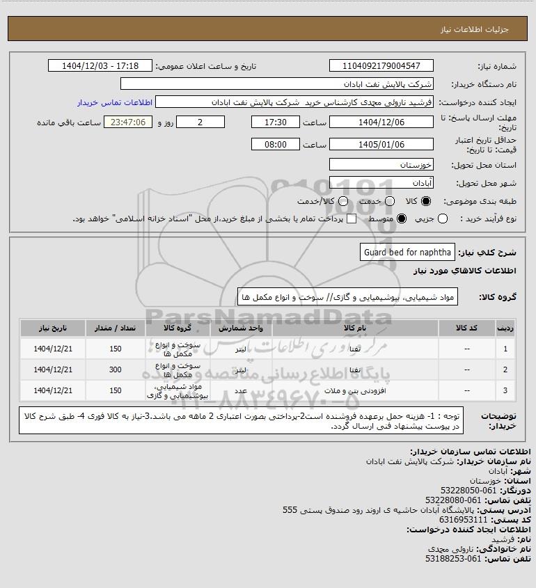 | 2 | -- | نفتا | لیتر | سوخت و انواع مکمل ها | 300 | 1404/12/21 |