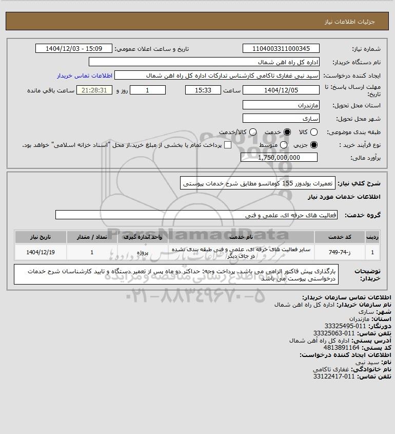 شرح کلی نیاز: تعمیرات بولدوزر 155 کوماتسو مطابق شرح خدمات پیوستی