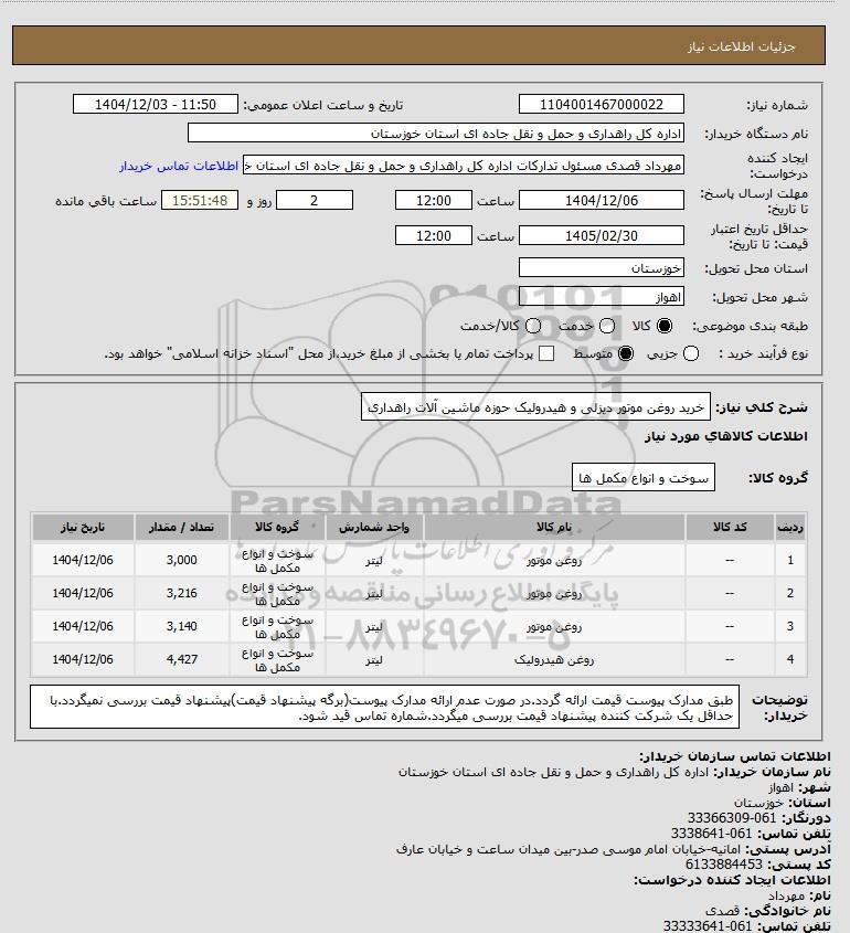 استعلام خرید روغن موتور دیزلی و هیدرولیک حوزه ماشین آلات راهداری، سایت ستاد، استعلام روز دوشنبه چهارم اسفند ماه 1404, استعلام خرید روغن موتور دیزلی و هیدرولیک حوزه ماشین آلات راهداری، سایت ستاد