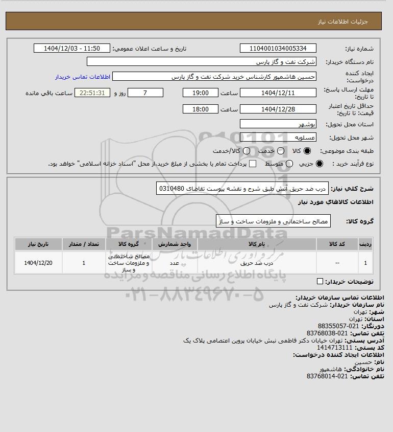شرح کلی نیاز: درب ضد حریق آتش طبق شرح و نقشه پیوست تقاضای 0310480