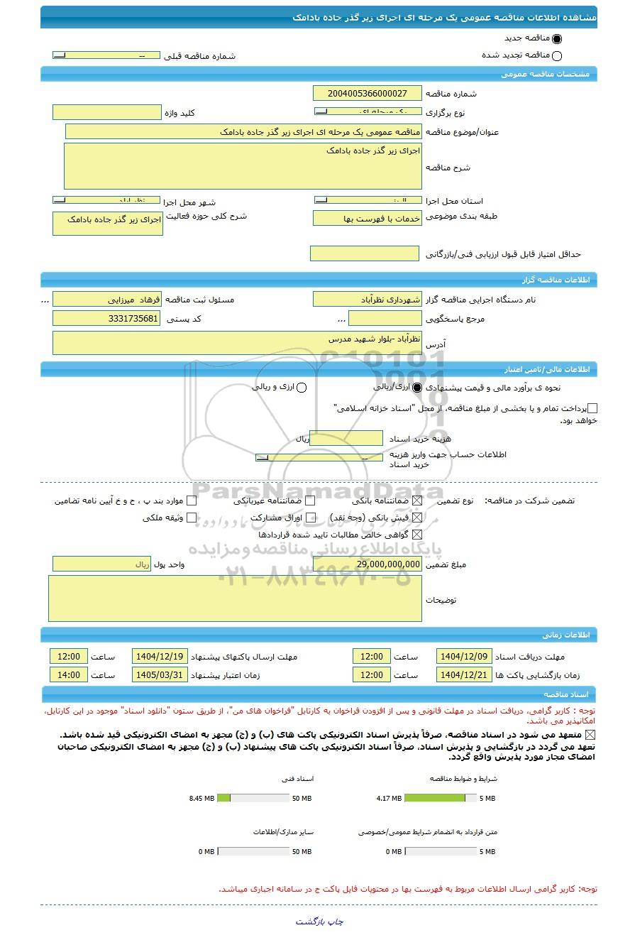 نام دستگاه اجرایی مناقصه گزار شهرداری نظرآباد مسئول ثبت مناقصه فرهاد میرزایی
