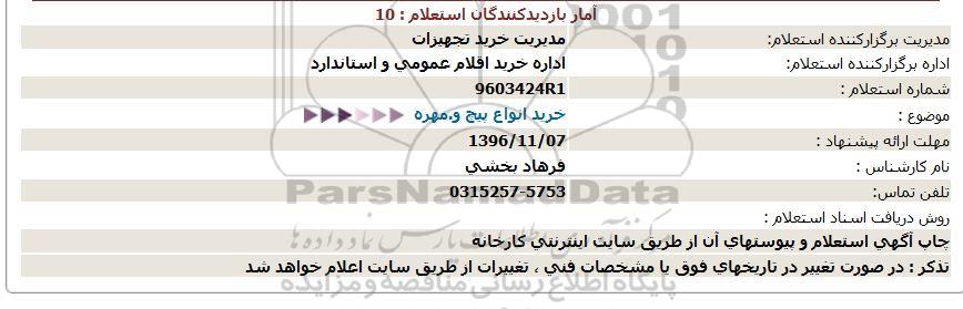 شماره استعلام : 9603424R1