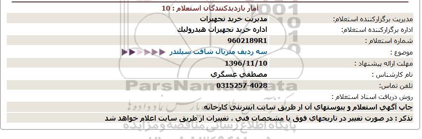 اداره برگزارکننده استعلام: اداره خرید تجهیزات هیدرولیک