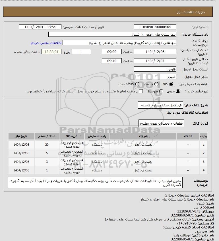 | 2 | -- | یونیت فن کویل | دستگاه | قطعات و تجهیزات تهویه مطبوع | 6 | 1404/12/06 |