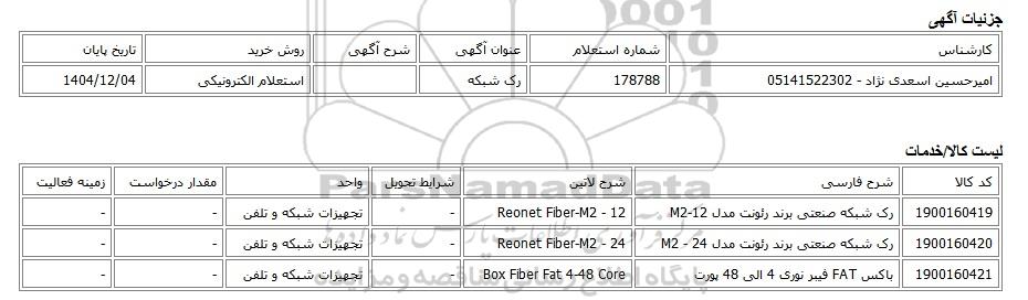 امیرحسین اسعدی نژاد - 05141522302178788رک شبکهاستعلام الکترونیکی1404/12/04