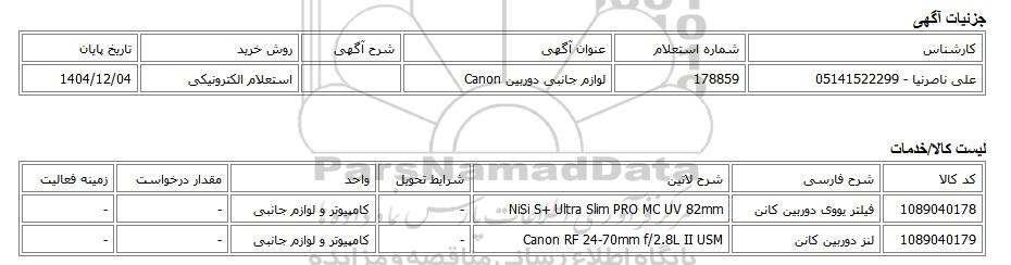 علی ناصرنیا - 05141522299178859لوازم جانبی دوربین Canonاستعلام الکترونیکی1404/12/04