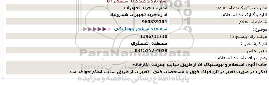 اداره برگزارکننده استعلام: اداره خرید تجهیزات هیدرولیک