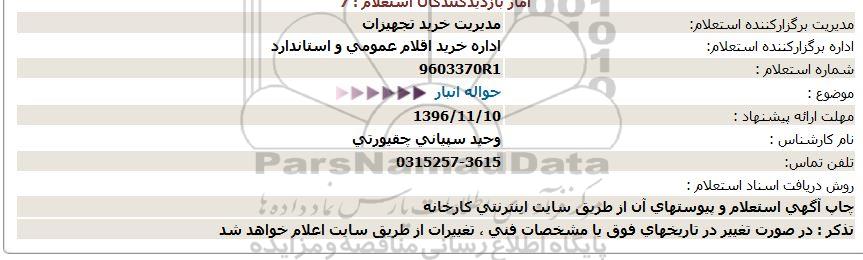 اداره برگزارکننده استعلام: اداره خرید اقلام عمومی و استاندارد
