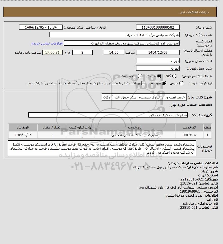نام سازمان خریدار: شرکت سهامی برق منطقه ای تهران