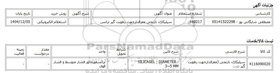 مصطفی شایگانی پور - 05141522298169217سیلیکاژل نارنجی معرفدارجهت رطوبت گیر ترانساستعلام الکترونیکی1404/12/05