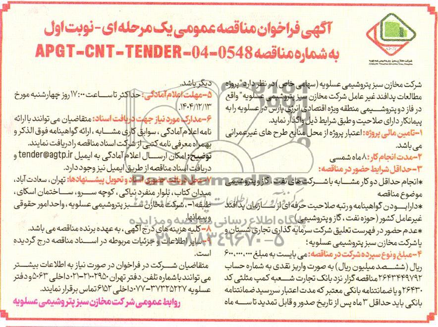 به شماره مناقصه APGT - CNT - TENDER - 04 - 0548