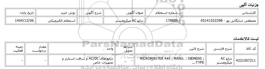 مصطفی شایگانی پور - 05141522298178888درایو AC میکرومستراستعلام الکترونیکی1404/12/06